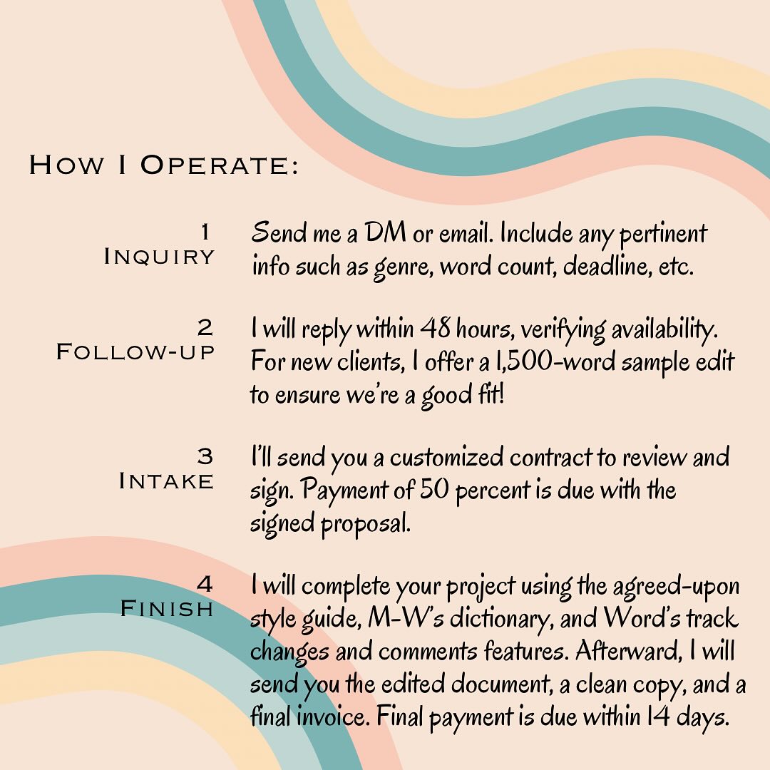 - I offer a 1,500-word sample edit for new clients to ensure that we’re a good fit working together.